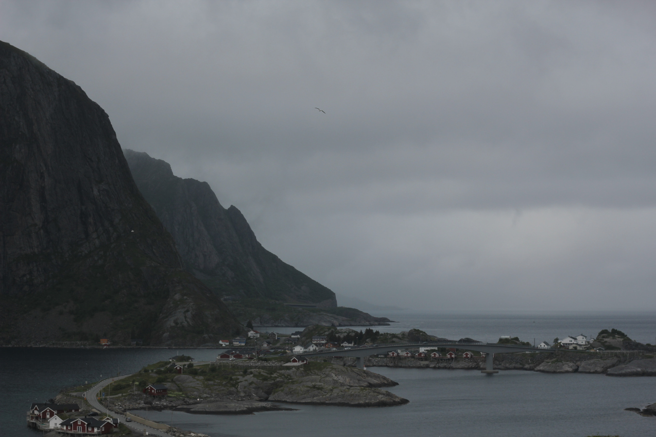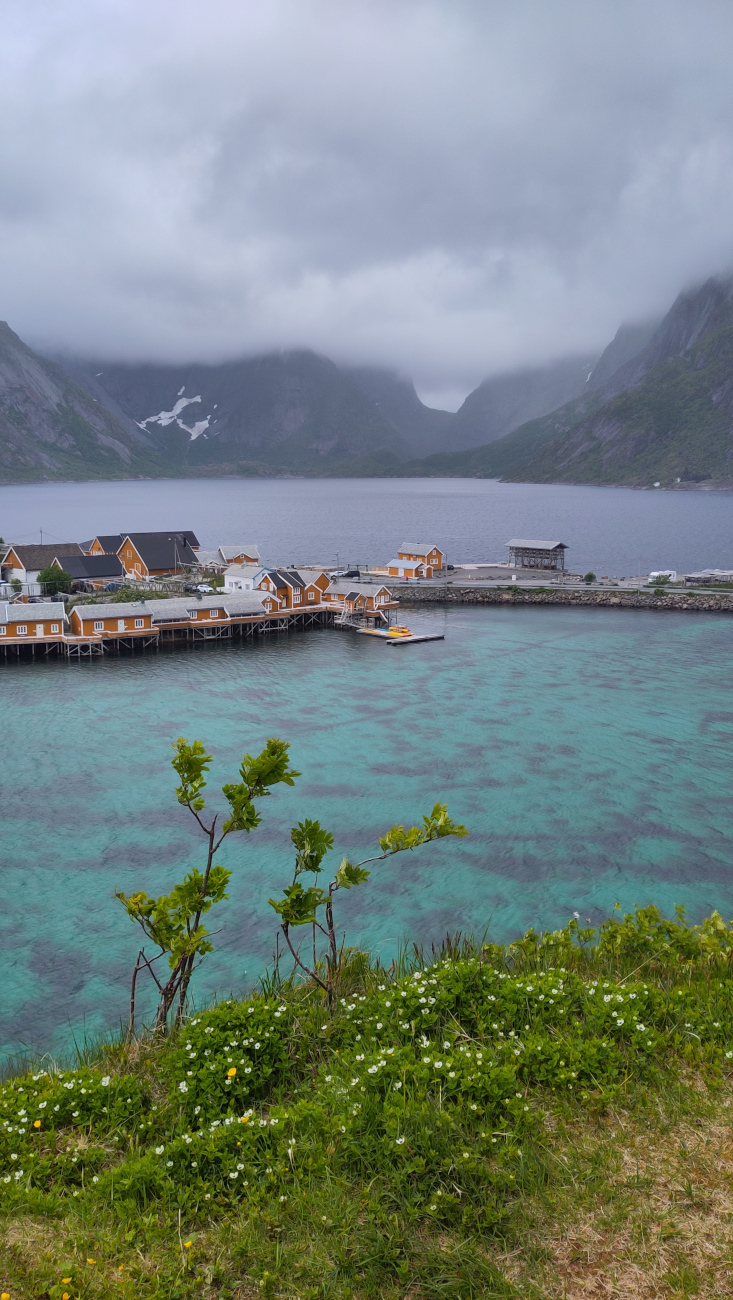 Ich laufe an der Straße entlang in Richtung Reine, bestaune immer noch das blaue Wasser und die roten Häuschen. Träume davon mir genau hier eines zu kaufen und den ganzen Tag raus blicken zu können.