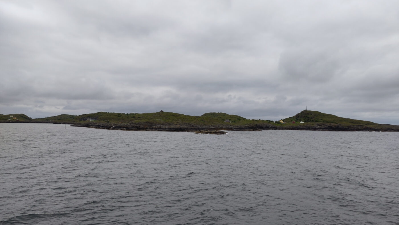 Bald schon zeigen sich, noch halb von düsteren Wolken verborgen die Inseln am Horizont.